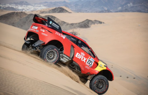 Stéphane Peterhansel ocupaba la segunda posición en la especial en el km 120, por detrás de Nasser Al-Attiyah, cuando se le ha desgajado la suspensión trasera y se ha visto obligado a detenerse para esperar a las asistencias en el km 153. Primer revés para Monsieur Dakar.