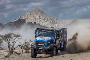 Después de la odisea vivida en la jornada de ayer, Albert Llovera-Marc Torres-Jorge Salvador (Iveco – Fesh Fesh) protagonizaron, inicialmente, una jornada de características muy diferentes en los 514 km (181 km, de enlace y 333 km, de especial), a cubrir en el bucle con salida y llegada en la asistencia de HA’IL.