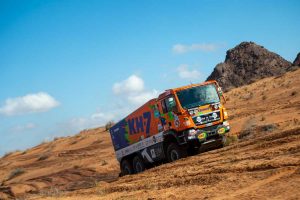 A bordo del MAN 6×6, dotado de un propulsor adaptado por EVARM alimentado por GLP (gas licuado) y por un ecocombustible desarrollado por Repsol, los tres tripulantes del KH-7 Epsilon Team han logrado llegar a meta tras casi 10 horas de carrera. Una jornada maratoniana que los ha dejado exhaustos, cuando el Dakar no ha hecho más que empezar. El propio Ballbé lo resumía así: “Ha sido un día muy duro y muy largo, aunque según los expertos que se sientan a mi lado, ha sido una etapa de las chulas”.