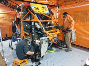 El arduo trabajo de los mecánicos, dirigidos por Cristo Dávila y Pedro Martínez en el coche durante todo el día ha posibilitado superar las verificaciones de la FIA, siendo precintado y declarado apto para poder competir mañana durante la etapa 3 con salida y llegada en Al Qaisumah, con 255 km de categoría especial y un enlace de 381 km, que pondrán a prueba al vehículo de Pedro Peñate y Rosa Romero.