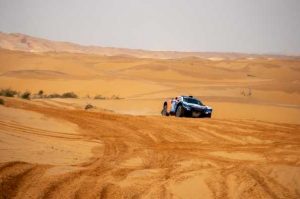 Los 338 kilómetros de la especial de hoy con salida en Hail y llegada cerca de Riyad, eran una etapa en línea con un perfil más o menos llano pero con arena y dunas casi en un 90 por ciento del recorrido y tierra en el resto. Todo ello aderezado con una superficie del firme mojada casi en su totalidad.