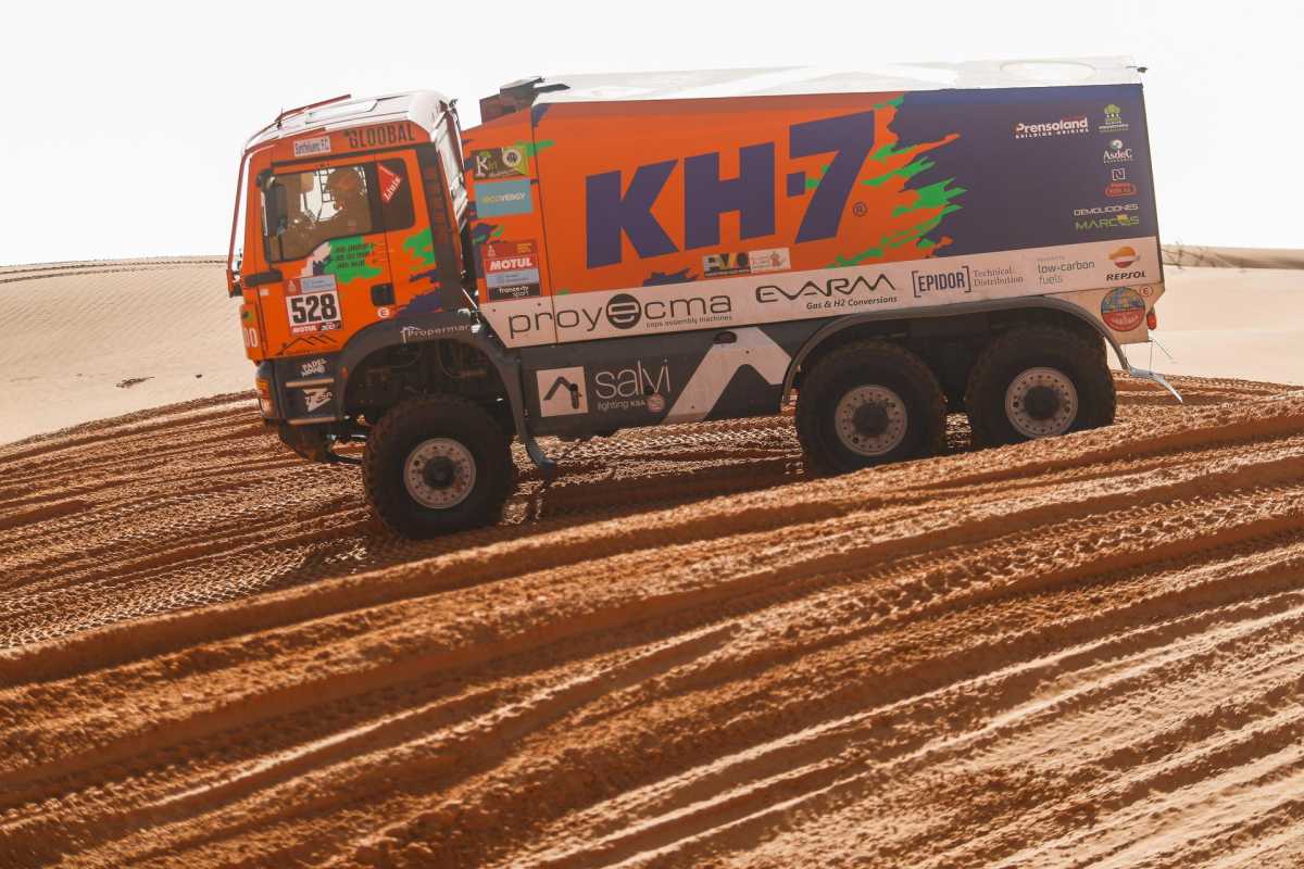 “Ha sido una etapa complicada, con muchas dunas y exigente de navegación, pero hemos ido siempre a ritmo y muy bien. Nos ha beneficiado que la arena estuviera dura por la lluvia, si no todavía estaríamos ahí dentro”, reconocía Jordi Juvanteny. El piloto del MAN 6×6 del KH-7 Epsilon Team también se ha mostrado satisfecho por el hecho de haber completado los casi 800 kilómetros de etapa (338 contra el reloj y 453 de enlace) sin apenas haber “maltratado” la mecánica. Una etapa redonda.