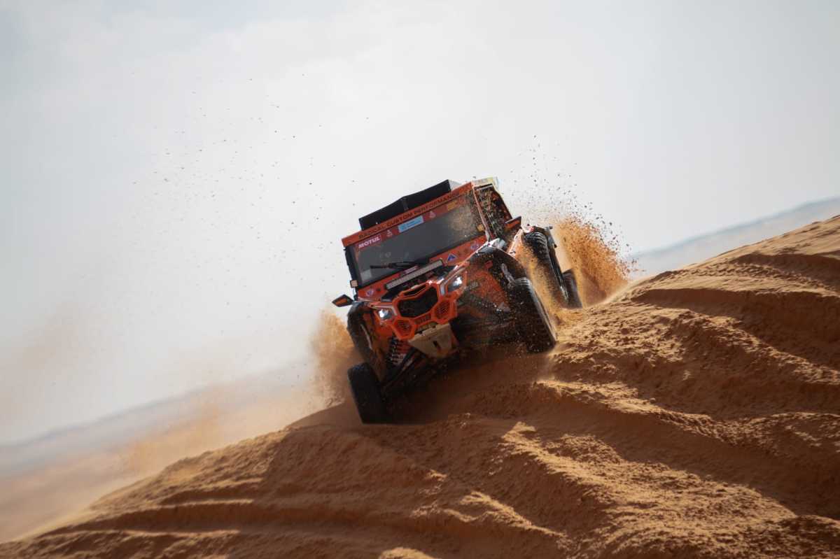 Tras recorrer un primer enlace de 214 km, comenzaba la aventura del tramo especial de 255 km en el que la lluvia favoreció sin duda el pilotaje de todos los pilotos al endurecer la arena de las numerosas dunas que tuvieron que atravesar en el día de hoy, permitiendo a Pedro Peñate y Rosa Romero disfrutar de lo lindo durante toda la prueba, en su reencuentro con la carrera tras dejar atrás los problemas mecánicos para recuperar la fiabilidad de su CAN-AM Maverick X3 XRS.