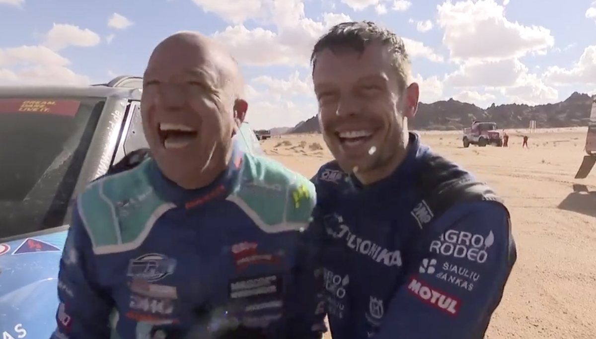 Curiosa la imagen captada al final de la segunda jornada del Dakar, donde Vaidotas Zala se encabrona con Tom Coronel al cree que le ha perjudicado durante la carrera, pero se da cuenta del error y le termina regalando un queque.