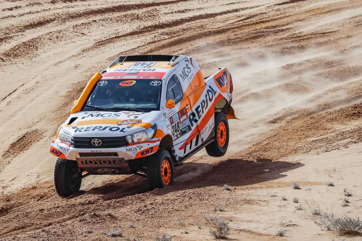«La etapa de hoy era bastante rápida, con una primera parte hasta la neutralización con pequeñas dunas que nos ha ido bien. Luego, la segunda parte tenía una zona amplia de dunas, pero con la arena muy mojada y compacta, por lo que se iba casi a fondo en todos lados, sin apenas navegación y no me he encontrado cómodo. En esta segunda parte, nos hemos juntado en las dunas con varios coches y en un momento, al bajar de una, nos hemos encontrado a uno de ellos completamente parado. Apenas me ha dado tiempo a esquivarlo y hemos dañado la aleta delantera derecha. Esto nos ha roto el ritmo», ha comentado el de Oliana.