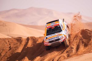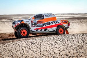 El equipo Repsol Rally Team ha vivido una cuarta etapa realmente intensa desde los primeros kilómetros camino de Riad, la capital de Arabia Saudí. Isidre Esteve y Txema Villalobos han vuelto a empezar realmente retrasados (81º) debido a la nueva normativa referente al orden de salida, lo que les ha obligado a tener que adelantar a varios camiones en la especial más larga de esta 44ª edición del Rally Dakar. No obstante, han logrado acabar una jornada «de máximo estrés» en la 37ª posición de coches y mantienen su lugar dentro del top 30 de la general.