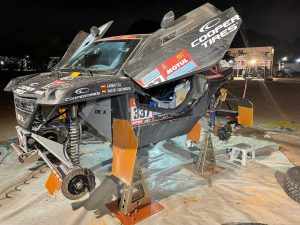 «Nuestro Dakar se ha terminado antes de lo esperado, desgraciadamente. Teníamos un prototipo ligero T3 que se había hecho con muchas ganas, muy buena ingeniería, muy buen material, pero no pudimos hacer test antes de venir aquí y esta carrera empezó exigente y con mucha participación. Las pequeñas cosas de los primeros días nos retrasaron, nos pusieron detrás y nos tocó rodar de noche. Las sensaciones del coche cuando lo hemos tenido en pista han sido buenas y las posibilidades son tremendas«, comenta el catalán.