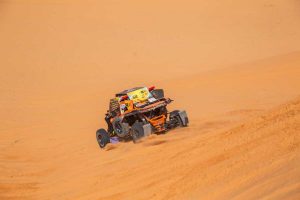 A la dificultad propia de la etapa se unía en esta ocasión los problemas de potencia del coche, especialmente en la zona de dunas y que obligó a reducir considerablemente la velocidad del coche en carrera, lo que repercutió en la línea de meta de la especial, que cruzaron en la 34ª posición con un tiempo de 7 horas, 26 minutos y 18 segundos.