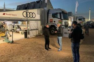 Nacho González, Director de Comunicación y RR.EE. de Audi España, analiza junto a Carlos Sainz la primera semana del Dakar 2022, en la que la marca de los cuatro aros y el piloto español han hecho historia al lograr la primera victoria de etapa con un coche con propulsión eléctrica.