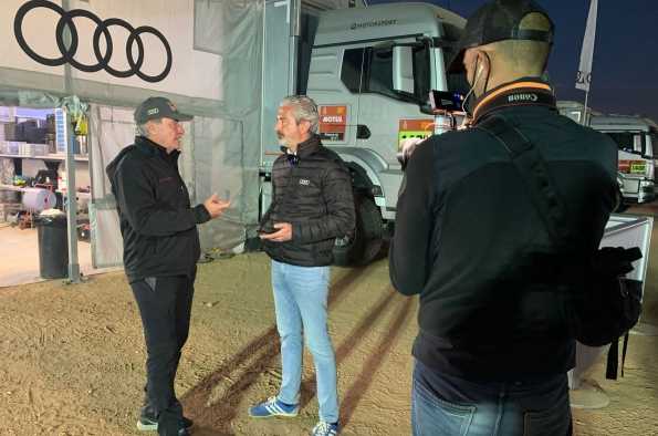 Nacho González, Director de Comunicación y RR.EE. de Audi España, analiza junto a Carlos Sainz la primera semana del Dakar 2022, en la que la marca de los cuatro aros y el piloto español han hecho historia al lograr la primera victoria de etapa con un coche con propulsión eléctrica.
