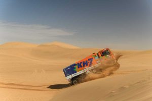 El Dakar, en el arranque de esta segunda semana, empieza a hacer mella en los tres integrantes del camión naranja del KH-7 Epsilon Team, que se reconocen cansados, pero fuertes. Por si fuera poco, hoy las dificultades que se han encontrado han sido mayúsculas, especialmente las dunas de nivel 3 que, en algunos casos, como ha reconocido la copiloto Fina Román, eran verdaderos muros para los camiones.