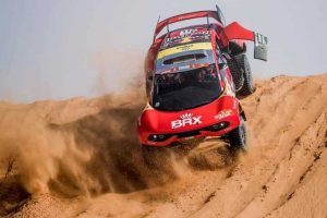 El galo perdió antes de la neutralización del kilómetro 191 una de las dos ruedas de repuesto al abrírsele la compuerta de la carrocería del BRX Hunter T1 + ECOpower que cubre esa zona, pero los comisarios no han considerado necesario imponerle una penalización, aunque sí una multa de 10.000 €, de los cuales 5.000 quedaron a expensas de que no se repita una situación similar.