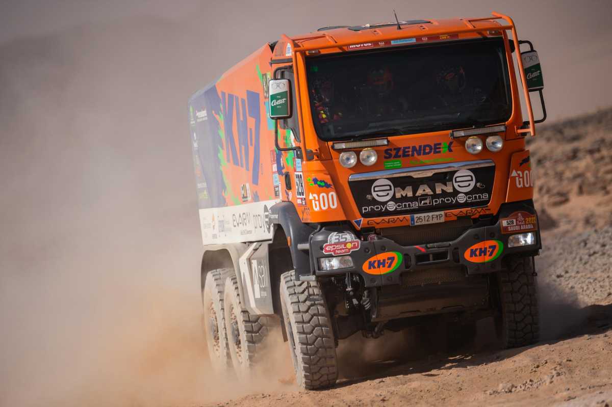 Lo que previsiblemente tenía que ser una etapa sencilla, de transición para muchos, no lo ha sido para todo el mundo. El KH-7 Epsilon Team, que hasta entonces venía haciendo una etapa sin complicaciones, se ha visto envuelto en un embrollo del que, por fortuna, ha logrado escapar. “Había, por lo menos, siete camiones más, y muchos de ellos se han quedado dentro. Por fortuna, nosotros contábamos con las manos de Jordi Juvanteny que, con una pericia extraordinaria, ha hecho parecer fácil lo difícil. Tanto Fina como yo no lo hemos visto nada claro, pero Jordi ha estado sobresaliente”, aseguraba el navegante Jordi Ballbé poco después de completar la especial.