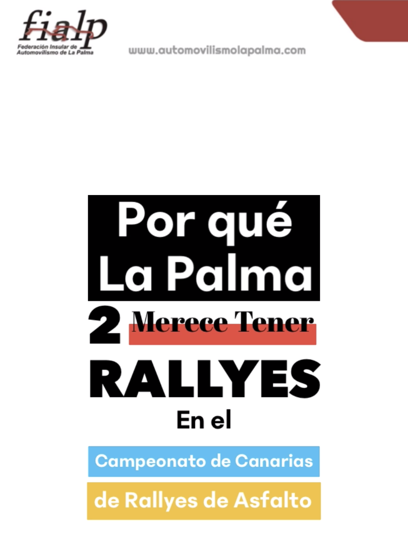 La Federación Insular de Automovilismo de La Palma (FIALP) ha publicado un vídeo en sus redes sociales en donde enumera los puntos por los que considera que la isla merece dos rallys del Campeonato de Canarias de Rallys.