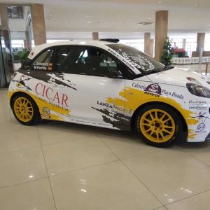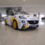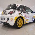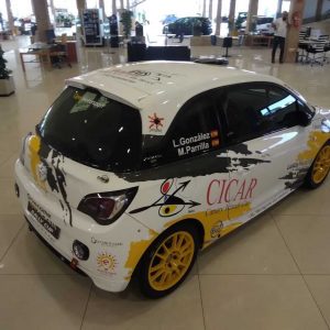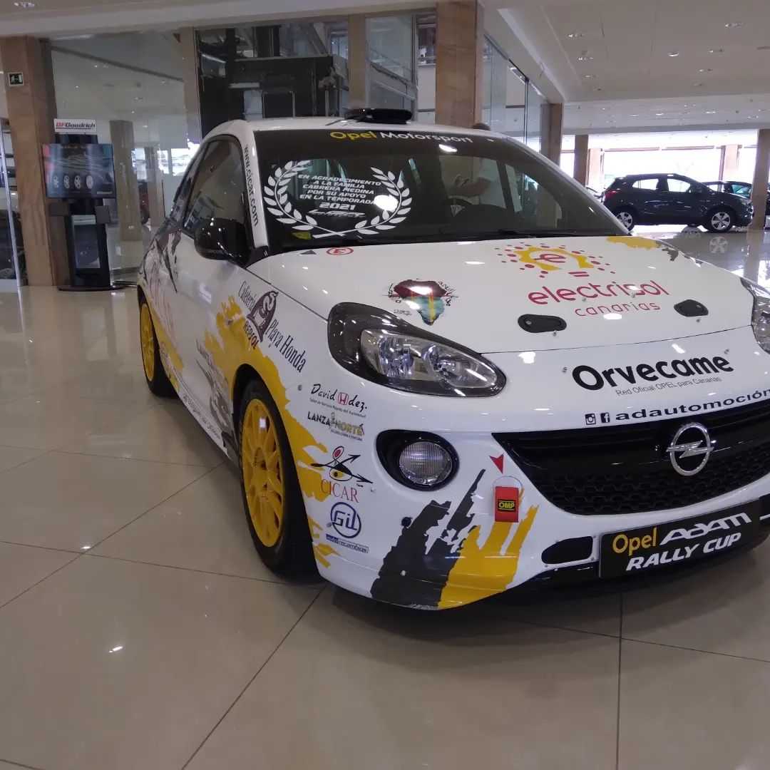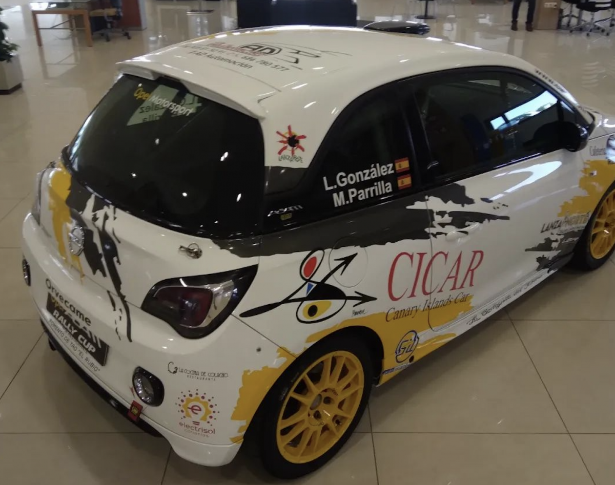 El piloto lanzaroteño Leandro González expone el Opel Adam Cup con el que ha competido las últimas temporadas.