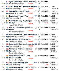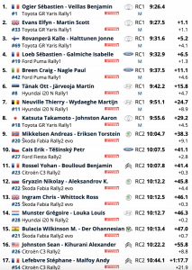Ogier fue el más rápido de esta especial, superando en 1.1 a los británicos Elfyn Evans y Scott Martin (Toyota GR Yaris Rally1) , segundos, seguidos de Kalle Rovanperä y Jonne Halttunen (Toyota GR Yaris Rally1), completando un nuevo ‘podio’ Toyota en esta especial, mientras que los anteriores líderes, Sébastien Ogier y Benjamin Veillas (Toyota GR Yaris Rally1), eran cuartos a 6.5, empatando al frente del liderato con su compatriota Ogier. Evan es tercero a 9.3