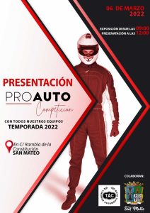 ProAuto Competición, que llega al automovilismo como nueva Escudería en este 2022, ha elegido San Mateo para, junto al Tinamar Automóvil Club y al Ayuntamiento de la Vega de San Mateo, para celebrar su presentación el próximo domingo 6 de marzo a las 12.00.