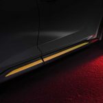El sofisticado patrón de diseño Kiiro se puede apreciar en los espejos retrovisores y en los bordes del techo, donde este se desvanece como si el viento o la velocidad lo arrastraran hacia la parte trasera del vehículo.