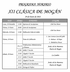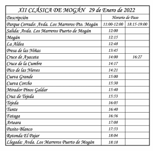 Orden de salida, horarios de paso y programa horario de la XII Clásica de Mogan Por Rafa León Última actualización: 26/01/2022 15:15 Compartir FacebookTwitterWhatsAppEmailTelegramLinkedin La XII Clásica de Mogan publica su orden de salida, horarios de paso, programa horario y cartel anunciador. Campeonato de Las PalmasCanariasClásica de MogánEspañaGran CanariaLas PalmasMogán Compartir