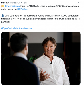 La presencia del veterano y laureado piloto grancanario José María Ponce en el programa de la Televisión Canaria Confesiones deja unos datos espectaculares.