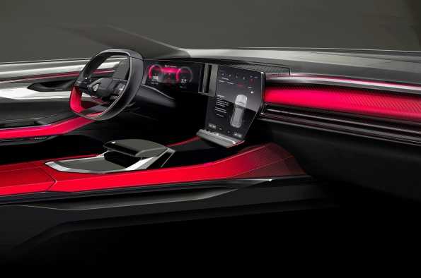 En colaboración con Google Automotive Services, su avanzada tecnología ofrece una luminancia y una reflexión de la luz optimizadas, lo que permite un salpicadero sin visera. Esto libera espacio y da a todo el coche un efecto flotante muy moderno. Con la misma preocupación por la pureza visual, el panel incorpora unas discretas rejillas de ventilación centrales verticales y un marco de pantalla ultrafino y enrasado. El volante cuadrado, con una ligera hendidura en su centro, se ha diseñado para mejorar el placer de conducción al tiempo que ofrece una perfecta legibilidad de la pantalla del salpicadero. Es una parte integral de la experiencia sensorial y visual de la cabina.
