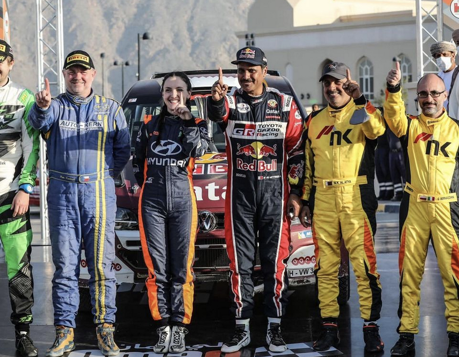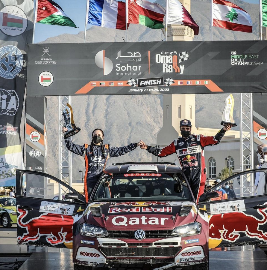 El qataría Nasser Al-Attiyah, reciente ganador del Dakar, y la copiloto española Alba Sánchez, en el habitual Volkswagen Polo R5 del piloto, lograron la victoria en el Oman international Rally.