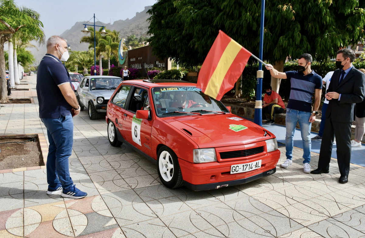 Junto al resto de presentes en la avenida de Los Marrero, el concejal de Deportes de Mogán, Luis Becerra, el subdirector del Hotel Cordial Mogán Playa, Eduardo Martínez, y el presidente de Fan Motor, Javier Morales, fueron dando la salida de cada uno de los equipos.