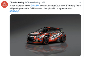 Y lo harán a los mandos de un Citroën C3 Rally2 de su propio equipo, el BTH Import Stal Rally Team.