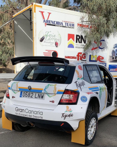 El grancanario Juan Carlos Quintana, y su paisano Yeray Mujica, estuvieron este pasado sábado realizando un test con su Skoda Fabia Rally2 de cara a la primera cita de la Copa de España de Rally de Tierra.