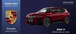 Porsche y el BMW iX han sido los encargados de inaugurar el año como los más destacados del primer estudio GEOM Index de 2022. Un trabajo de análisis el realizado por esta consultora española especializada en la industria de la automoción GEOM Index, cuyos resultados sitúan a Porsche y al nuevo iX como la marca y el modelo más valorados por los internautas de las principales páginas web españolas, foros y perfiles especializados de las redes sociales relacionados con el mundo del motor durante el mes de enero.