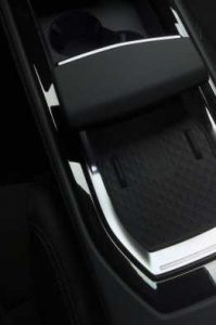 La consola central integra un reposabrazos revestido de cromo satinado con un acabado de grano fino para un tacto agradable. Inspirado en el mundo de la aeronáutica y la relojería, su diseño hace referencia a un mundo de precisión. Al deslizarlo, emite un chasquido similar al del selector de una caja fuerte, señal de la especial atención prestada a cada detalle.