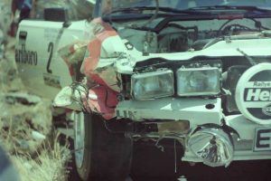 Siete días después, los Nissan tomaban la salida en Tenerife. Kaby-Gormley (Nº 2) y Lowell-Davis (Nº 6) sucumbían en el primer tramo de velocidad, «Barranco Hondo-Araya» (14,0 km). La imagen del roce lateral (el sabor de la tierruca, como diría un santanderino) pertenece al Nissan de Kaby. Una actuación esperpéntica que desilusionó a los aficionados de la época.