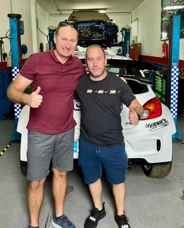 El preparador polaco Paweł Dytko aprovechó su visita a la isla de Tenerife para visitar el taller del piloto tinerfeño Roberto Negrín, que tiene un Mitsubishi Mirage Proto, unidad construida por la empresa del propio Pawel.