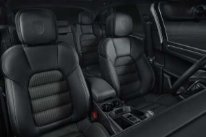 El interior del Macan T tiene personalidad propia. Lleva de serie asientos deportivos calefactados de ajuste eléctrico en ocho posiciones, con una tapicería exclusiva basada en el pack de cuero negro. La parte central de las butacas delanteras y de las traseras de ambos extremos lleva una franja Sport-Tex, mientras que los reposacabezas de delante incorporan el escudo Porsche en relieve. El color de contraste del exterior continúa en el habitáculo con las costuras decorativas en tono plata de los asientos, los reposacabezas y el volante.