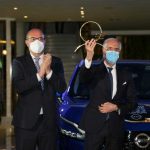En el transcurso de un evento protocolario con la máxima representación institucional insular en La Palma, Bruno Mattucci, Consejero Director General de Nissan Iberia recibía de manos de D. Anselmo Pestana, Delegado del Gobierno en Canarias, el premio al Mejor Coche de Canarias 2022 para el Nissan QASHQAI. Acompañaban en este evento al Delegado del Gobierno en Canarias, las primeras autoridades y representantes del sector empresarial de La Palma, así como los alcaldes de los municipios de afectados por el volcán Cumbre Vieja.