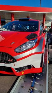 Semanas atrás llegaba desde Portugal hasta Santa Úrsula, norte de Tenerife, el nuevo Ford Fiesta R5+ que adquiría el piloto tinerfeño Juan Carlos Brito. La unidad llegaba con el blanco y azul como colores predominantes, pero esta temporada se le verá con el rejo y negro como colores más dominantes.