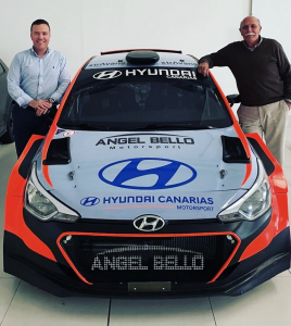 El piloto tinerfeño Ángel Bello recibió la visita del padre del piloto Edu Noriega, que adquirió uno de los dos Hyundai i20 R5 que tenía en propiedad.