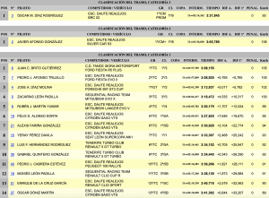 Arunzú Quintero (Speed Car GT1000), que marcó la pauta en la categoría 3 en los entrenamientos tuvo una salida de carretera, por lo que Óscar M. Díaz (BRC 02) es el único clasificado con un crono de 3:31,845, mientras que Javier Afonso (Silver Car S3) también es el único clasificado en la categoría 2 con un 3:05,789.
