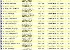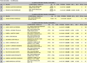 Arunzú Quintero (Speed Car GT1000) ha sido el más rápido en la categoría 3 con un crono de 3:24,081, Javier Afonso (Silver Car S3) manda en la categoría 2 con un 3:13,177 y Brito en la categoría 1 con un 3:16,988, superando en 2.785 a Pedro Javier Afonso (Ford Fiesta Evo II).