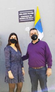 Con motivo de las actividades para visualizar la igualdad en el Día Internacional de la Mujer (8 de marzo), el IES Ana Luisa Benítez con el que la Federación de Las Palmas de Automovilismo suscribió recientemente un convenio de colaboración en el área automoción de competición, la dirección del instituto realizó una serie de reconocimientos a mujeres relacionadas con el entorno del instituto y en diferentes facetas laborales, sociales, culturales y deportivas, con la entrega de placas y diplomas y la nominación de una calle dentro del perímetro del centro educativo. Una de esas mujeres fue la piloto canaria Emma Falcón, campeona de Europa de Rallys hace unos años, que desde hoy ya tiene una calle a su nombre y con su correspondiente leyenda que reza: «Emma Falcón Campeona de Europa de Rallys».