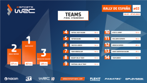 El doblete de Nexl e Izamusing ha sido fundamental para que el equipo Race Clutch mantenga el liderazgo en la clasificación por equipos. El equipo con sede en Francia tiene una ventaja de ocho puntos sobre el equipo eRally Drivers de Kazunokota.
