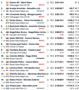 El piloto del Volkswagen Polo GTI R5 mantuvo la calma a pesar de un trompo en el penúltimo tramo. Mantuvo una diferencia importante y finalmente selló su primer triunfo en el ERC por una renta de 55,7 segundos sobre los locales Armindo Araújo y Luís Ramalho (Škoda Fabia Rally2 evo), que empezaban la jornada como terceros a 1:59.7 de los españoles.