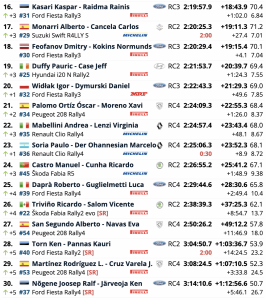 El piloto del equipo Hyundai Portugal, Bruno Magalhaes, subió al sexto lugar después de que Norbert Herczig retirara su Skoda en la sección de carretera a la SS17. Magalhaes hizo mejoras en la configuración de su i20 N durante todo el fin de semana y se quedó detrás de Battistolli a 3:20,6.