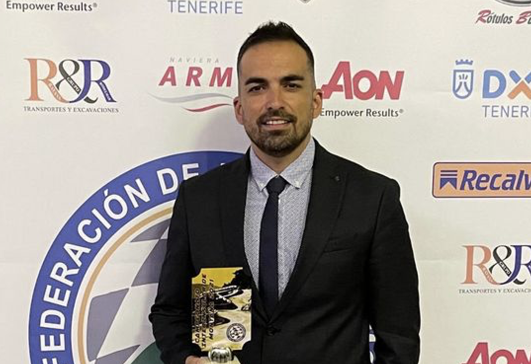 El rápido piloto tinerfeño Jonathan García Palenzuela (Porsche 997 Gt3) recibió el premio como campeón del Interinsular de Santa Cruz de Tenerife de Montaña 2021.