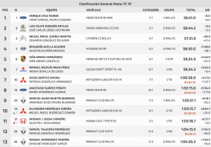 Novenos fueron los siempre veloces Marcos Martín y Armando Rivero (Renault Clio Rally5), cerrando las diez primeras plazas los lanzaroteños Alejandro Rodríguez y Miguel Ángel Rodríguez (Mitsubishi Lancer Evo VII), que le arrebataron el puesto en la última especial a Aridany Ojeda y Agustín Vega (Honda Civic Type R R3).