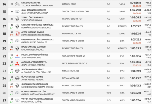 Terceros acabaron Miguel y Edu, que en su estreno con el C3 no pudieron estar cerca de la cabeza a pesar de ser líderes en el primer tramo del sábado. Se quedaron a 50.9 de los ganadores, a 47.4 del segundo puesto y superando en 58.1 a Benjamín Avella y Agustín Alemán en su primera carrera con el Hyundai i20 R5 con el que corriera en el Campeonato de España de Rallys Iván Ares. Lamentar el abandono de Toñi Ponce y Pedro Domínguez (Hyundai i20 R5) cuando eran cuartos.