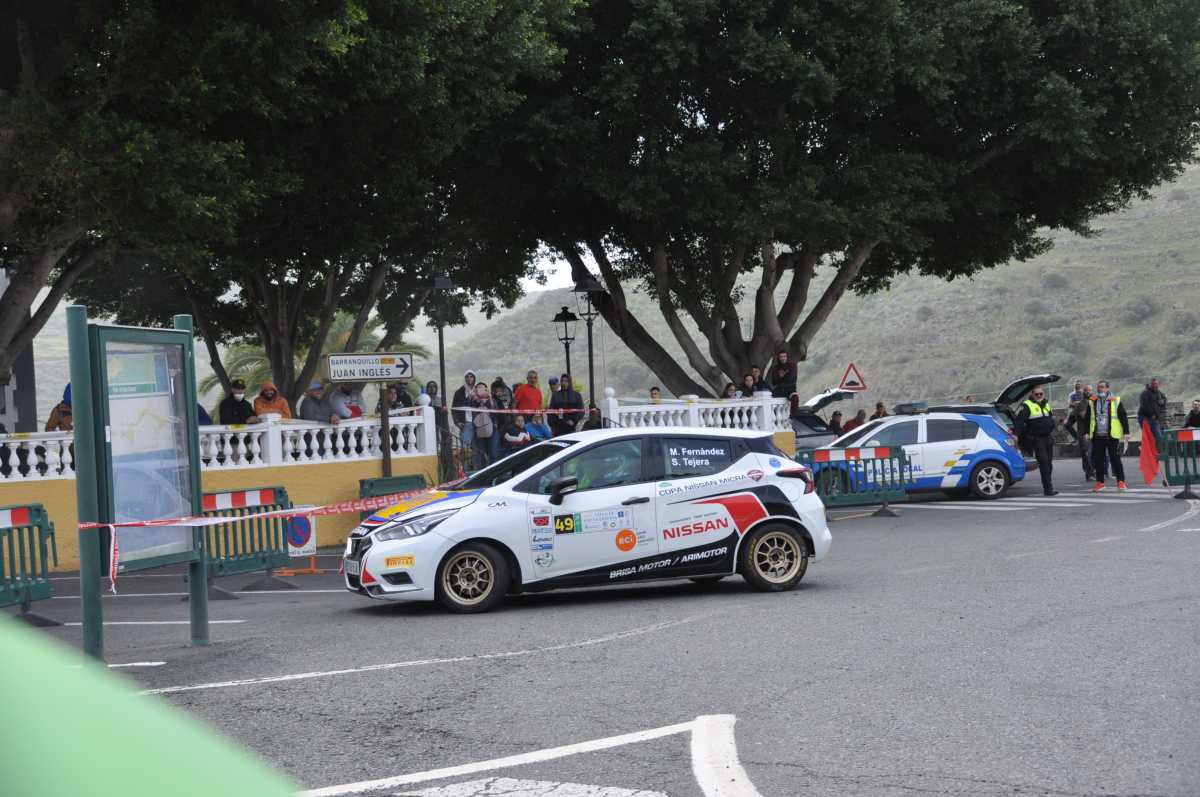La jornada del sábado arrancó sin que ninguno de los equipos se guardase nada. La primera reválida llegó con la especial de Valsequillo de Gran Canaria, de 10,46 kilómetros. Los campeones de la pasada temporada, Jesé Ramos y Alejandro Falcón mostraron sus cartas y se hicieron con su primer ‘scratch’ de la temporada con 7:18.5. Muy cerca se situaron Oliver Nieves y Javier Alonso (7:19.2), anticipando la lucha que iba a prolongarse durante muchos kilómetros. José María Santana y Aday Ortiz encontraron pronto su ritmo y suya fue la tercera posición en el tramo (7:20.9), un segundo más rápidos que Juan Francisco Santana y Rubén Rodríguez (7:21.9). A continuación, se clasificaron Miguel Fernández-Samuel Tejera (7:23.8), Cristian Batista-José Gabriel Espino (7:25.1), Yeray González-Yeray González de Juan (7:31.5), Javier Peñate-José Manuel Nuez (7:35.6), Francisco Reina-Yesher Reina (8:05.2) y Jonatan Toledo-Alejandro Ventura (8:11.5).