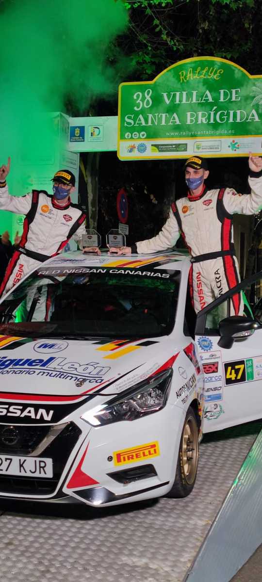 La pareja formada por Jesé Ramos y Alejandro Falcón se coronó campeona del XXXVIII Rallye de Santa Brígida y se situó como el primer líder de la Copa Nissan Micra Canarias 2022. El estreno del certamen monomarca más importante de cuantos se celebran en las Islas fue muy emocionante por la lucha que mantuvieron la dupla ganadora y los debutantes Oliver Nieves-Javier Alonso, que se resolvió por escasos 5,3 segundos tras diez tramos cronometrados. José María Santana y Aday Ortiz completaron el primer podio de la temporada.