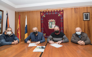En el Ayuntamiento de San Mateo, Antonio Ortega y Germán Morales estamparon sus respectivas firmas en el convenio de colaboración, acompañados por Miguel Reyes, concejal de Deportes del municipio grancanario, y Miguel Espino, coordinador de Seguridad de esta prueba del FIA European Rally Championship.