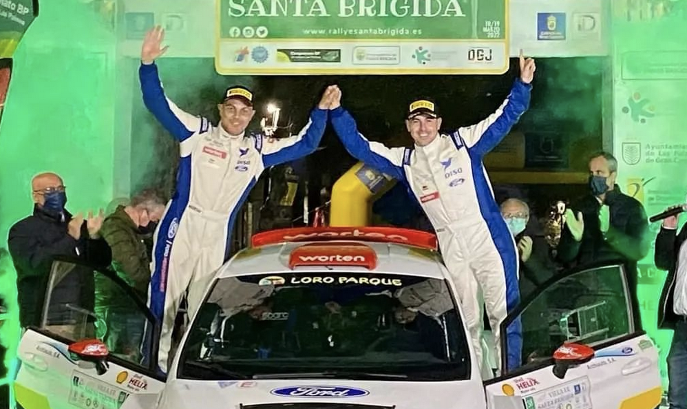 El copiloto grancanario Yeray Mujica, que junto al piloto tinerfeño Enrique Cruz (Ford Fiesta Rally2) lograron la victoria en el Rally Villa de Santa Brígida, se muestra feliz por lo vivido en la primera cita del Regional de Canarias y del Provincial de Las Palmas.
